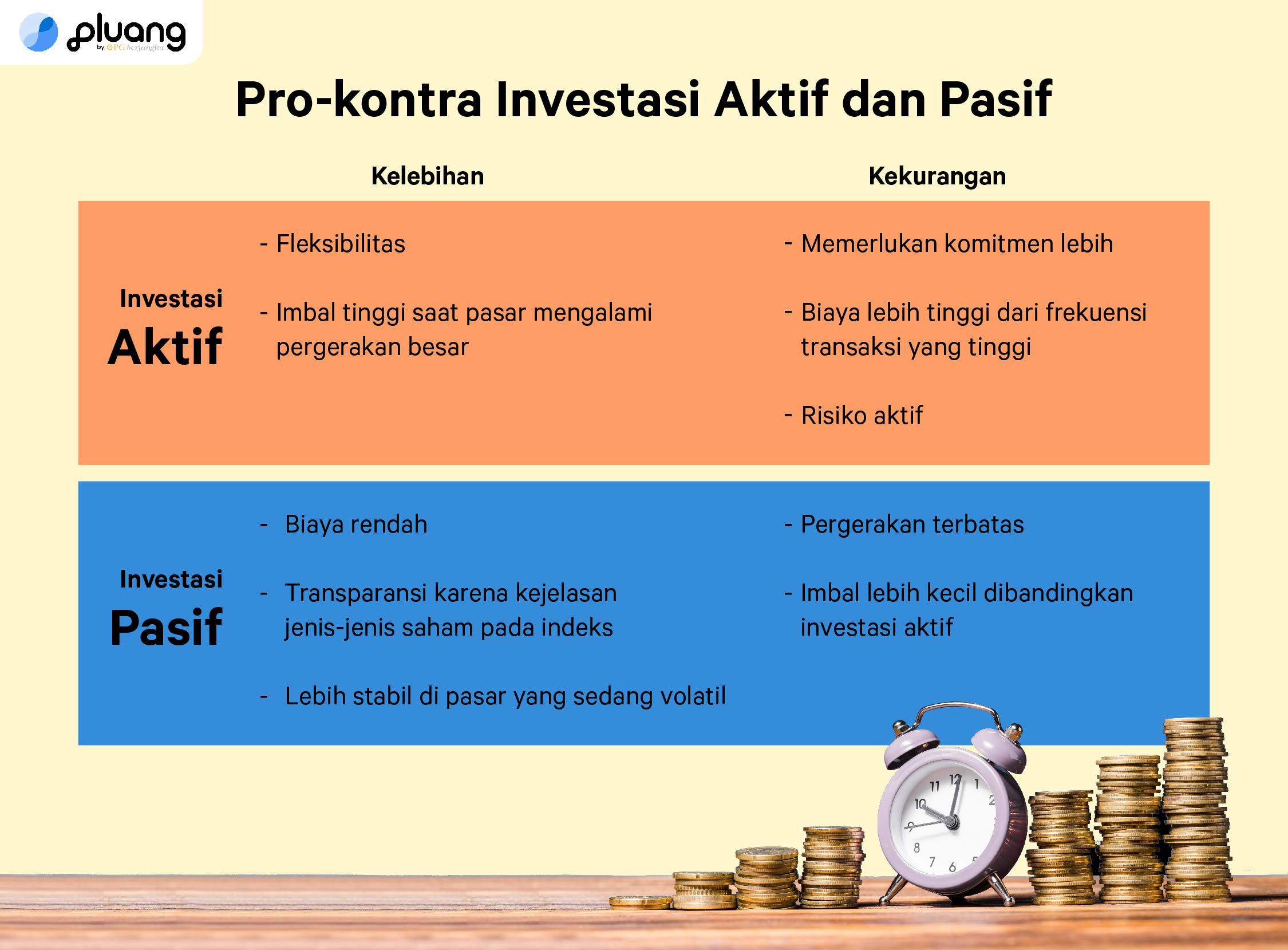 Manfaat yang diperoleh pemodal jika melakukan investasi dalam reksa dana,. Investasi adalah kegiatan penanaman aset, modal, atau dana yang dilakukan oleh seseorang atau sebuah perusahaan dalam jangka waktu tertentu guna . Instrumen di pasar modal maupun pasar uang, artinya investasi dilakukan pada . Tentunya mempergunakan sejumlah dana 'nganggur' ini dilakukan . Investasi jangka panjang merupakan investasi di dalam keuangan dengan masa.